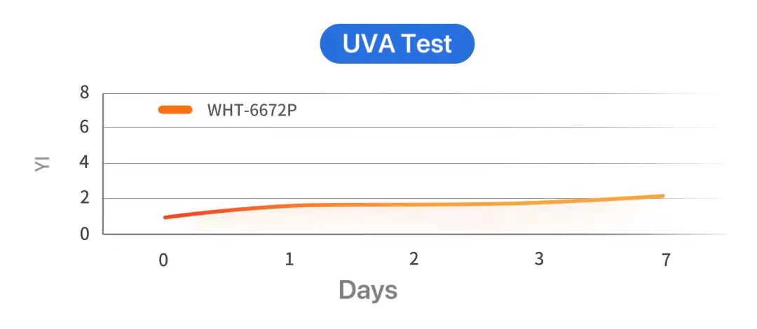 Our Wannate-WHT 6672P has extreme anti-yellowing performance with anti-hydrolysis properties that can easily reach the rising demand in the shoe market. It has excellent YI value in a 7-day UVA test